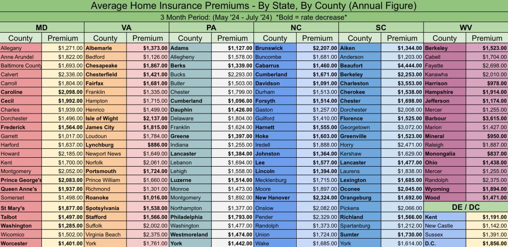August 28, 2024 James Blackwell Average Home Owner Insurance Rates in Mid-Atlantic Region Share this: Click to share on X (Opens in new window) X Click to share on Facebook (Opens in new window) Facebook Like Loading... Related